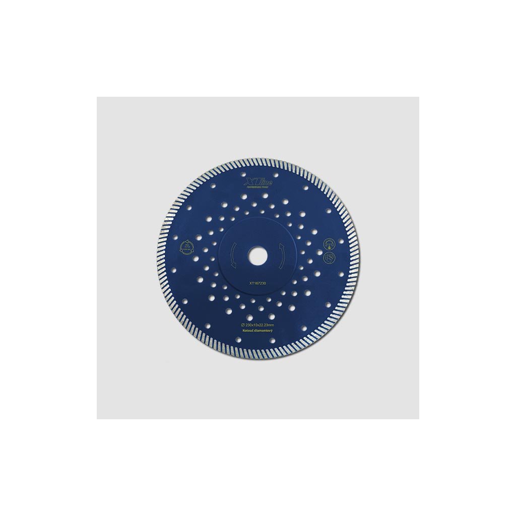 Diamantový rezný kotúč TURBO Fast Cut 125x2,2x10x22,2mm Diamantový turbo segmentový kotúč na suché a mokré rezanie betónu, železobetónu, muriva, kameňa, tehál, dlaždíc, mramoru, bridlice, strešných škridiel....Konštrukcia kotúča umožňuje veľmi rýchle rezanie s dlhou životnosťou segmentov. Laserom varený segment Turbo zabezpečuje menšie zahrievanie segmentov.chladiace otvory.