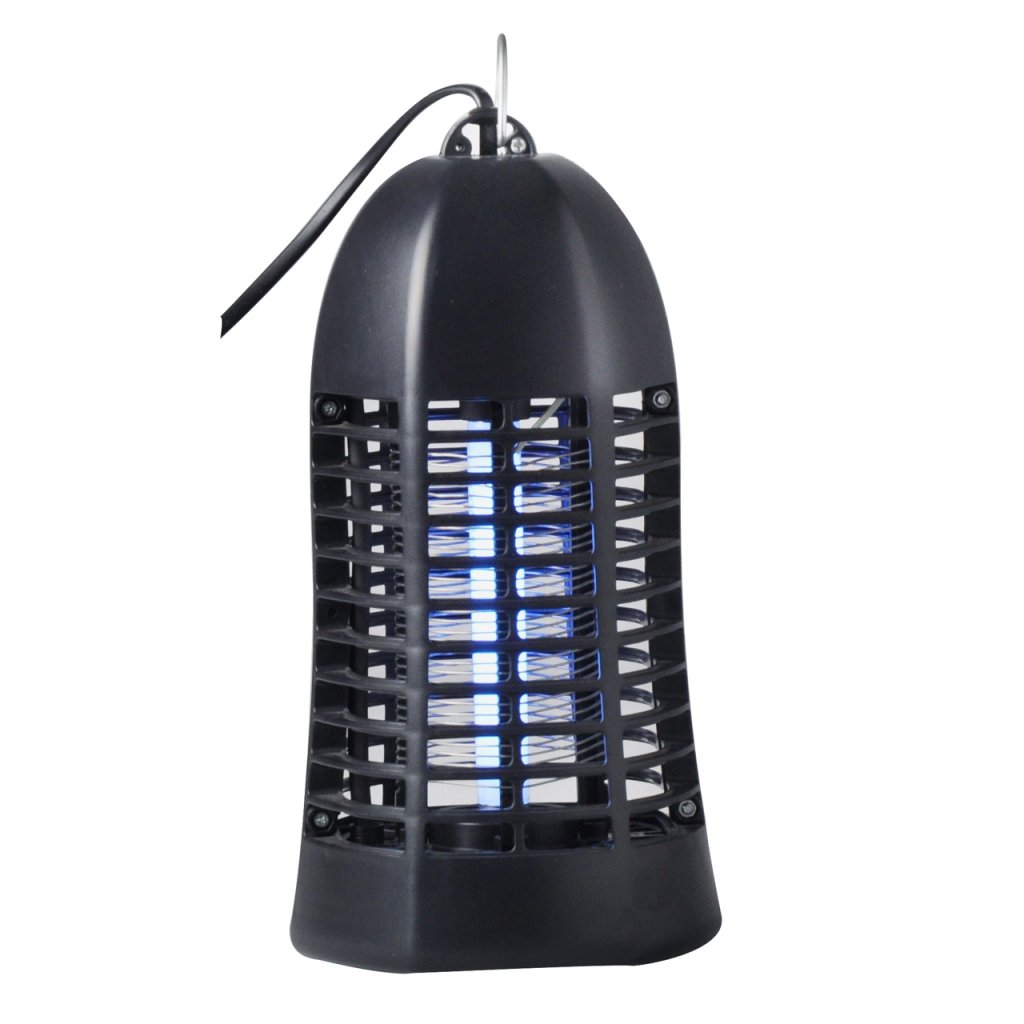 4W actinic ultraviolet lamp attracting insects Radius of action 40 m2 External protective grid Very quiet operation Hanging hook Max power 4 W, 230V 50Hz