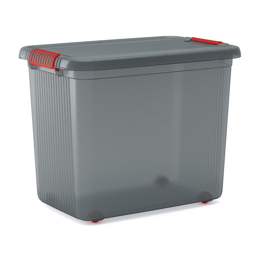 Najväčšou výhodou je jednoduchá manipulovatežnosť s týmto boxom. Má ** ergonomické rukoväte ** pre žahký prenos a navyše je opatrený kolieskami, ktoré vám pomôžu box presunúť aj keď ho máte úplne plný. Výhodné je aj priesvitné prevedenie, ktoré vám užahčia hžadanie aj keď máte viac boxov na sebe. Box je vežmi odolný proti nárazom a vysokým teplotám. Rozsah teplôt, ktoré box zvládne je ** od - 20 ° C do 100 ° C **. Pre ešte väčšie zabezpečenie boxu aj v prípade pádu je box vybavený vekom s klipovým uzatváraním .