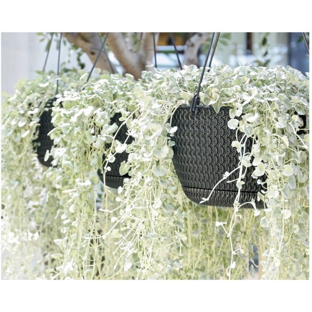 Jedinečný závesný kvetináč SPLOFY ROUND so štruktúrou imitujúcou úplet z hrubej priadze. Kvetináč je vybavený miskou so samozavlažovacím systémom a otvorom na jednoduchšie podlievanie. Vďaka kvalitnému plastu odolnému proti UV žiareniu a teplotným rozdielom sa kvetináč bezpochyby stane Vaším obľúbeným doplnkom na záhradu. Súčasťou kvetináča sú aj plastové lanká a hák na zavesenie.