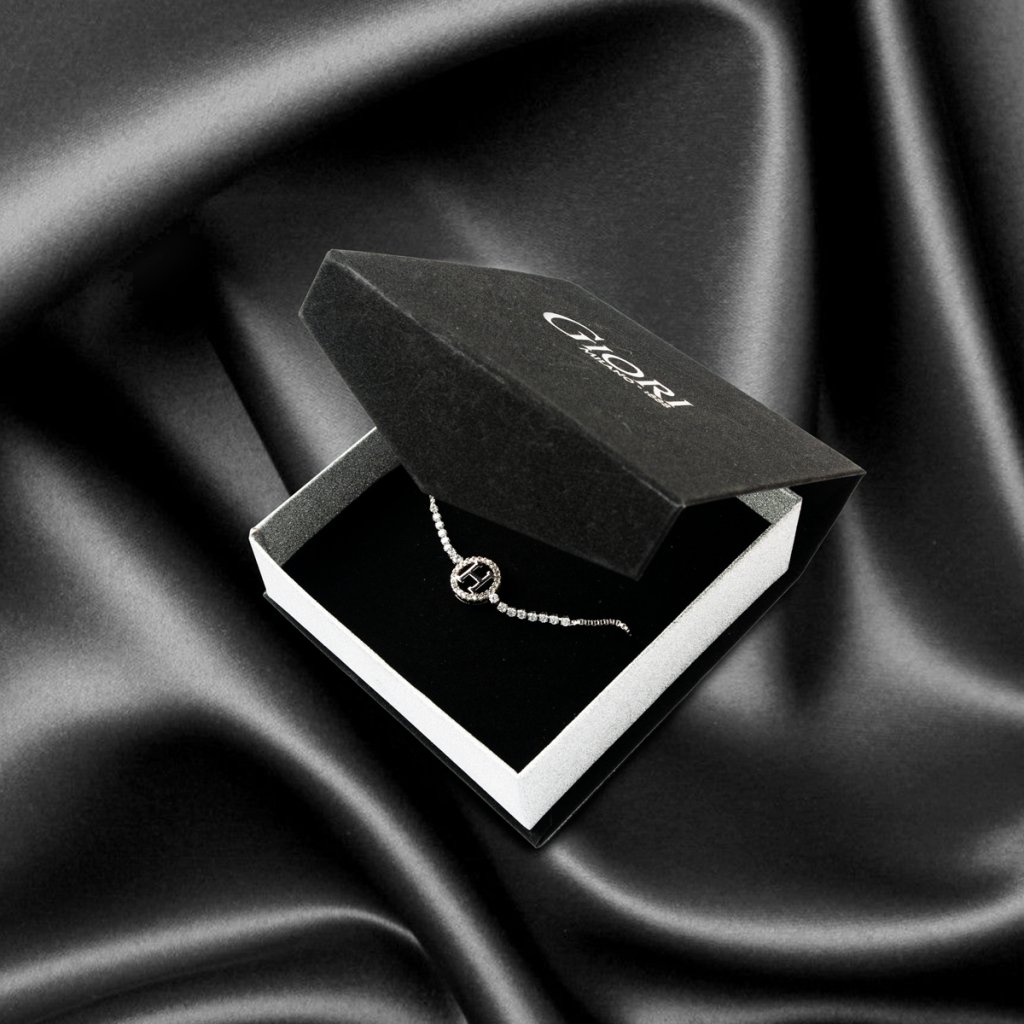 Jemný náramok značky Giora Milano vyrobený z ušžachtilej ocele so zvýšenou ochranou rhodiovaním. Pevné stabilné zapínanie, obvod 17cm. Náramok je osadený v strede krúžkom s rímskymi číslicami a po oboch stranách centrálne osadenými čírymi kryštálmi.