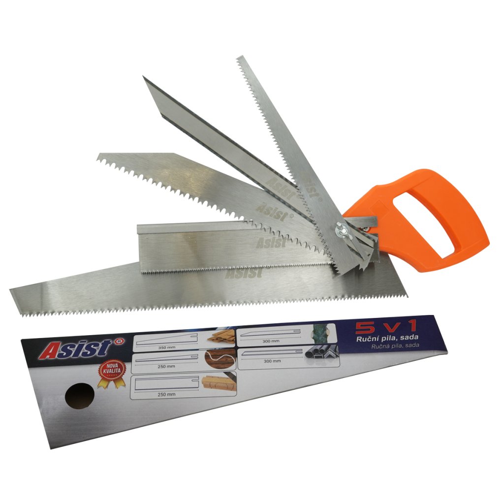 Ručná píla 350 mm, hrúbka 0,7 mm, 65M oceľ Píla na drevo 250 mm, hrúbka 0,6 mm, 65Mn oceľ Záhradná píla 300 mm, hrúbka 0,6 mm, 65Mn oceľ Píla na kov 295mm , obojstranná, hrúbka 0,6 mm, uhlíková oceľ 60, frézované zuby Vyrezávací píla 250 mm, hrúbka 0,7 mm, 65Mn oceľ