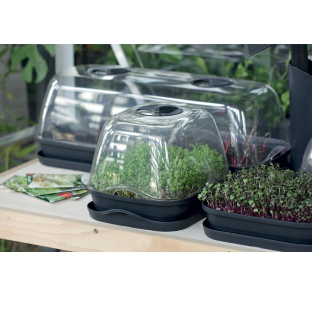 Ideálne rozmery umožňujú predpestovanie sadeničiek pre vašu záhradku alebo môžete používať na pestovanie byliniek či klíčkov priamo pre potreby vo vašej kuchyni. 2x regulovateľné ventilačné otvory zaisťujú mikroklímu a zabraňujú zapareniu rastliniek. Vďaka ľahkému číremu veku majú rastliny dostatok svetla pre svoj rast a máte ich stále na očiach.