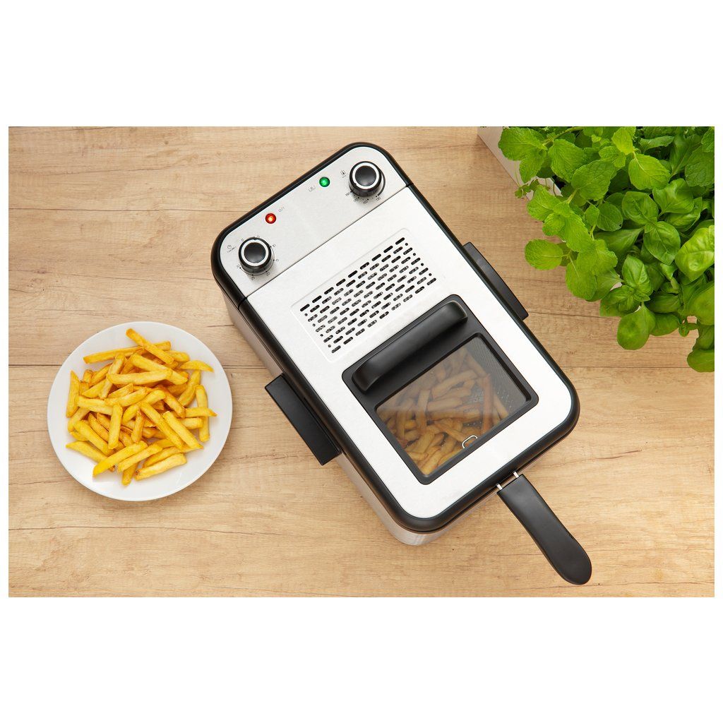 Fritéza bjem 3,2 l / 1,4 kg hranoliek Veko s priezorom pre plnú kontrolu prípravy jedla Nastaviteľný termostat od 130 do 190 C Príkon 2 200 W Povrch vnútornej nádoby: nepriľnavý povrch Nerezové telo Nerezové veko dnímateľné nerezové veko pre ľahké čistenie dnímateľná vnútorná olejová nádoba vhodná na umývanie v umývačke riadu Integrované madlo pre ľahké otváranie dnímateľné madlo fritovacieho koša pre ľahkú úschovu a čistenie Fritovací kôš z pochrómovanej ocele pre dlhodobú životnosť Rukoväť so studeným povrchom pre jednoduchú obsluhu Svetelná kontrolka Mechanické ovládanie Bezpečnostná poistka proti prehriatiu dnímateľné tepelné teleso na jednoduché čistenie Madlá pre jednoduchú manipuláciu Hliníkový tukový filter Chytré držadlo na odkvapkávanie oleja po vyprážaní Dĺžka prívodného kábla: 1 m Rozmery: (výška × šírka × hĺbka) 210 mm × 350 mm × 220 mm Hmotnosť: 1,9 kg dnímateľné časti vhodné na umývanie v umývačke Časovač Inteligentné uskladnenie napájacieho kábla