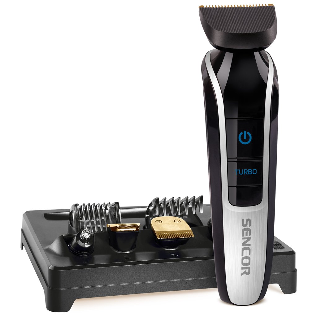Dodávané príslušenstvo: Praktický stojan, nadstavec na odstránenie chĺpkov z nosa, nadstavec na zostrih fúzov, štandardný nadstavec na zostrih vlasov, nadstavec na tvarovanie kontúr, nadstavec na zostrih dlhých vlasov, regulácia dĺžky zostrihu fúzov, regulácia dĺžky zostrihu telových chĺpkov