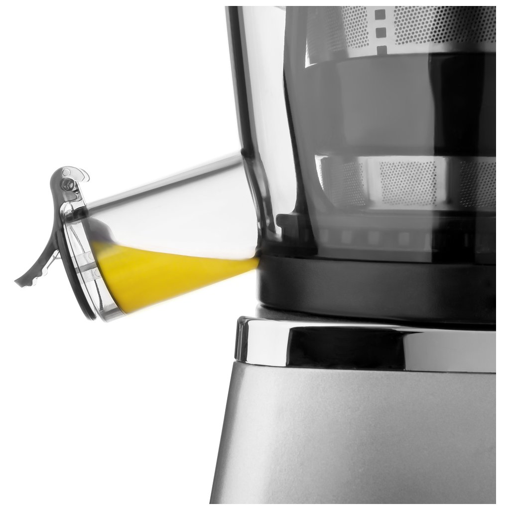 Vysoko efektívne odšťavovanie Automatické oddelenie drene Nádoba na dreň s objemom 0,8 l Nádoba na šťavu s objemom 0,8 l Nerezové filtračné mikrosieťo Tritánová odšťavovacia nádoba BPA free Transparentná odšťavovacia miska pre dobrú viditeľnosť na priebeh odšťavovania Vysoko účinný 400 W motor Trojitá ochrana: - Motor sa spustí iba, ak je prístroj správne zostavený - Funkcia automatického vypnutia v prípade sňatia krytu - Funkcia automatického vypnutia v prípade prehriatia motora Pomalá rýchlosť 60 ot./min. pre uchovanie všetkých vitamínov a enzýmov Protišmykové nôžky s prísavkami pre bezproblémové použitie Robustný motor určený pre súvislé 15-minútové odšťavovanie Dĺžka prívodného kábla: 110 cm Rozmery (dĺžka x šírka x výška): 200 × 175 × 495 mm Hmotnosť: 5,1 kg Hlučnosť: <70 dB (A) Napätie a frekvencia: 220-240 V, 50/60 Hz
