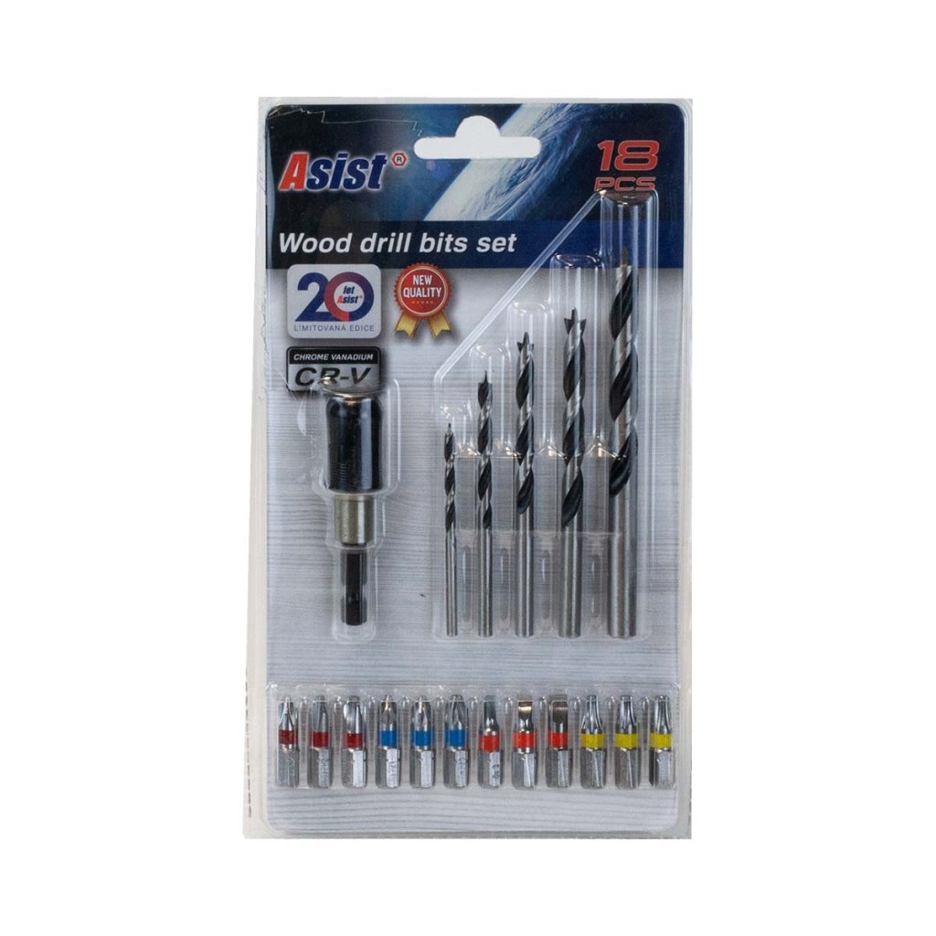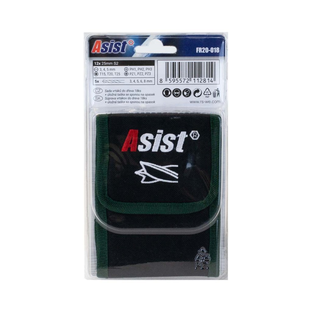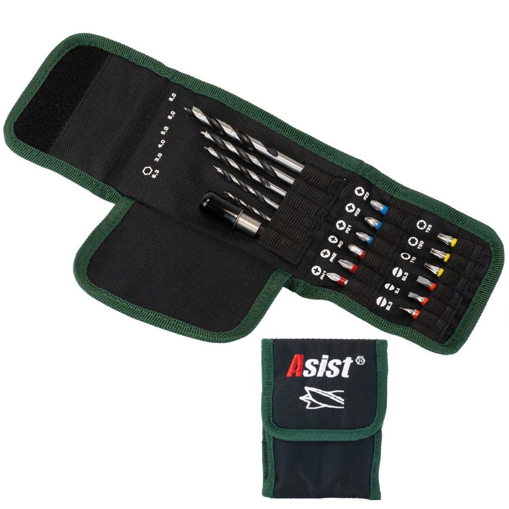 18-dielna súprava vrtákov do dreva ponúka vhodný vrták pre každú situáciu a navyše sa dodáva v krásnom zelenom nylonovom puzdre ASIST na jednoduché skladovanie a pripnutie na opasok.