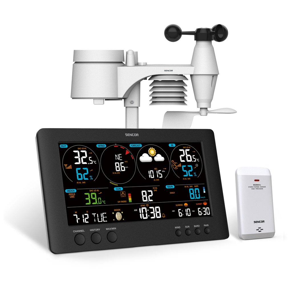 Bezdrôtový senzor 7v1: Rýchlosť vetra, smer vetra, dažďové zrážky, teplota, vlhkosť, intenzita svetla a UV (súčasťou príslušenstva) TH senzor: SWS TH9898-9770-12500 - teplota, vlhkosť (1x senzor v balení) Podpora až 7 bezdrôtových senzorov (SWS TH9898-9770-12500) Prenos na dlhú vzdialenosť medzi hlavnou jednotkou a senzormi 7v1/TH - až do vzdialenosti 150 m (v otvorenom priestore) Kalibrácia dát o počasí (prostredníctvom užívateľského rozhrania nastavenia) Podpora aktualizácie firmvéru Bezdrôtový senzor 7v1 - Frekvencia hlavnej jednotky: 868 MHz Bezdrôtový senzor TH - Frekvencia hlavnej jednotky: 868 MHz